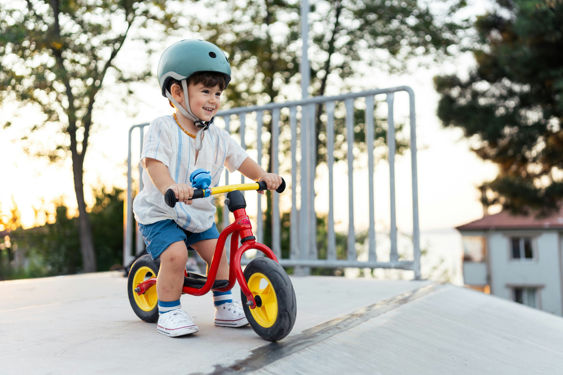 Ska barnet använda cykelhjälm på balanscykel?