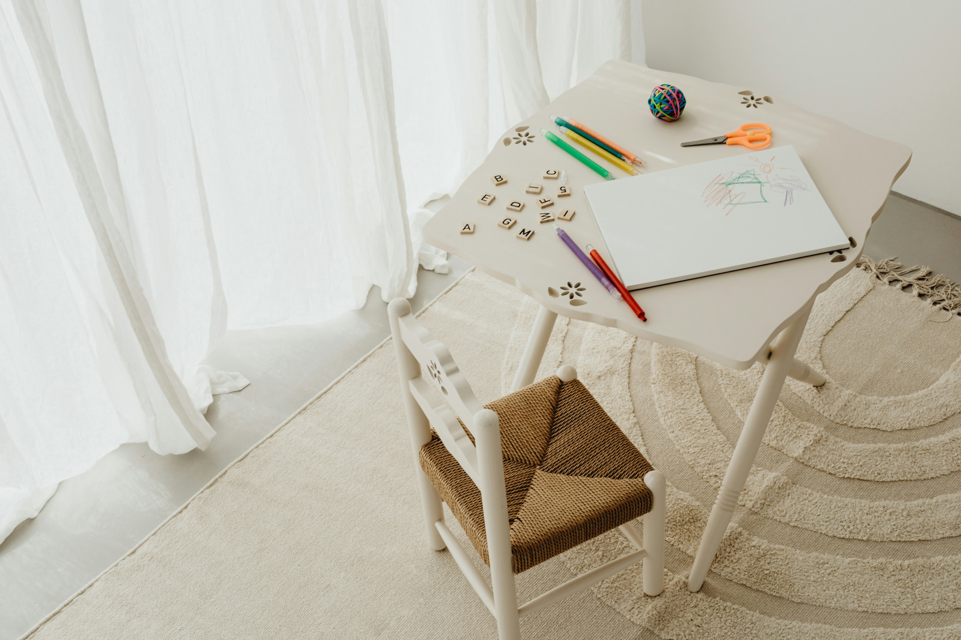 Ytan är behandlad med en vattenbaserad, miljövänlig lack utan skadliga ämnen eller onödiga kemikalier. Det gör stolen lämplig för barnmiljöer där säkerhet och hälsa prioriteras.